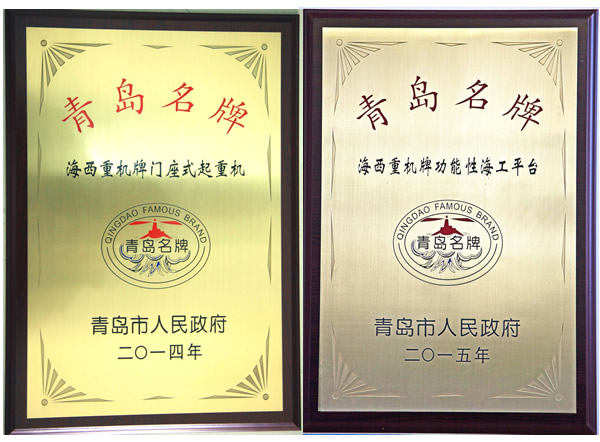 近年來,青島市大力推進質量強市戰略,深入實施品牌培育工程,涌現出一批市場競爭力強、知名度高、代表“青島制造”形象的品牌產品。我公司“海西重機牌功能性海工平臺”和“海西重機牌門座式起重機”產品作為省市重點培育對象,經過前期申報、區(市)推薦、專家評審以及消費者投票、公示等評審程序,最終分別被評定為2014、2015年度青島名牌產品。