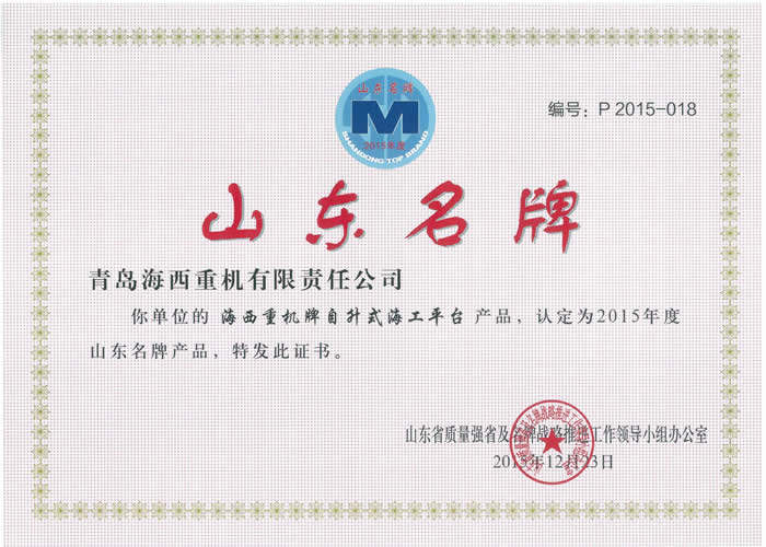 繼青島名牌之后,海西重機再入名牌榜單,自主研發制造的自升式海工平臺喜獲2015年度“山東名牌產品”榮譽稱號!