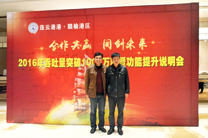 12月23日-25日,“連云港港?贛榆港區(qū)2016年吞吐量突破1000萬噸暨功能提升說明會”順利舉辦。作為該港的重要合作伙伴和港口設(shè)備供應(yīng)商,青島海西重機有限責任公司董事長鄧振山一行應(yīng)邀出席活動。