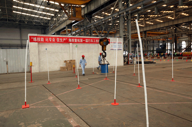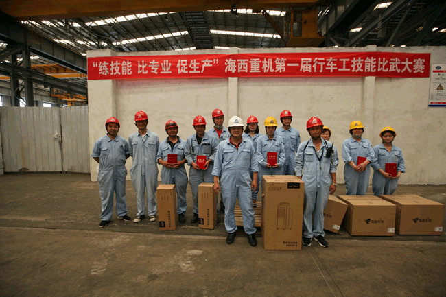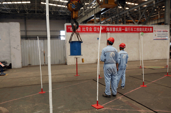 起重吊裝作業在公司諸多生產工藝環節當中,是使用頻率較高、危險性較高的作業工序,安全、平穩、準確、快速地吊裝作業是高效生產的關鍵因素。行車占公司起重吊裝設備超過70%,因此行車工為我司的重點生產崗位之一,其技能水平的高低,在很大程度上影響著產品的生產節奏,甚至對公司整體上的生產節拍都會產生重大影響。公司一貫主張“不僅要有好的裝備,還要把裝備維護、保養好,更要把設備功用足用好”,在此背景下,為檢驗公司行車工的技能實力,提高行車工崗位意識和技能水平,促進行車工自主學習、苦練技能,進一步提升公司安全、高效的生產能力,由公司黨委主辦,工會承辦的行車工技能比武大賽應運而生。