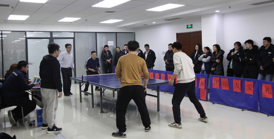 比賽分上下半區循環賽,每隊采取三局兩勝制,分為男子單打、女子單打、男女混雙、男雙、男單五組進行團體比賽,每組比賽采取三局兩勝十一分制。乒乓球作為我國國球,有著無可比擬的群眾基礎,無論男女老少皆可上臺“搓幾下”。此次比賽得到了廣大員工的關注,大家紛紛到場為自己支持的代表隊吶喊助威。