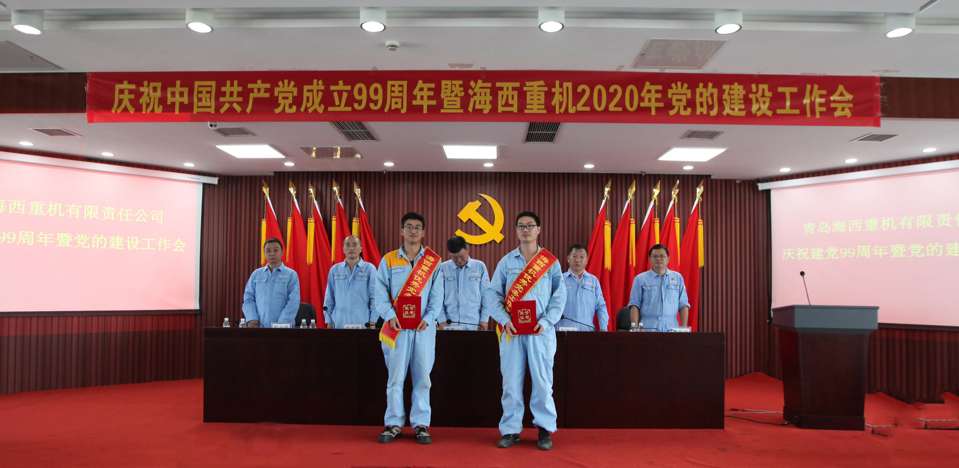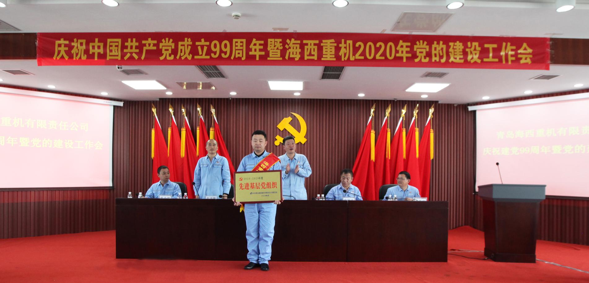 7月15日,武漢船機海西重機召開慶祝中國共產黨成立99周年暨2020年黨的建設工作會,總結回顧一年來黨的建設工作,分析面臨的形勢任務,安排部署下一階段公司黨的建設和生產經營重點工作,表彰先進集體和優秀個人,開展黨員攻關小組授旗儀式,開展新黨員入黨宣誓,動員全體黨員干部不忘初心、牢記使命,努力踐行“三品三心”企業核心價值觀,全面打贏疫情防控和生產經營兩大戰役,以優良業績慶祝中國共產黨成立99周年。會議由公司黨委副書記、紀委書記朱聲凱主持。