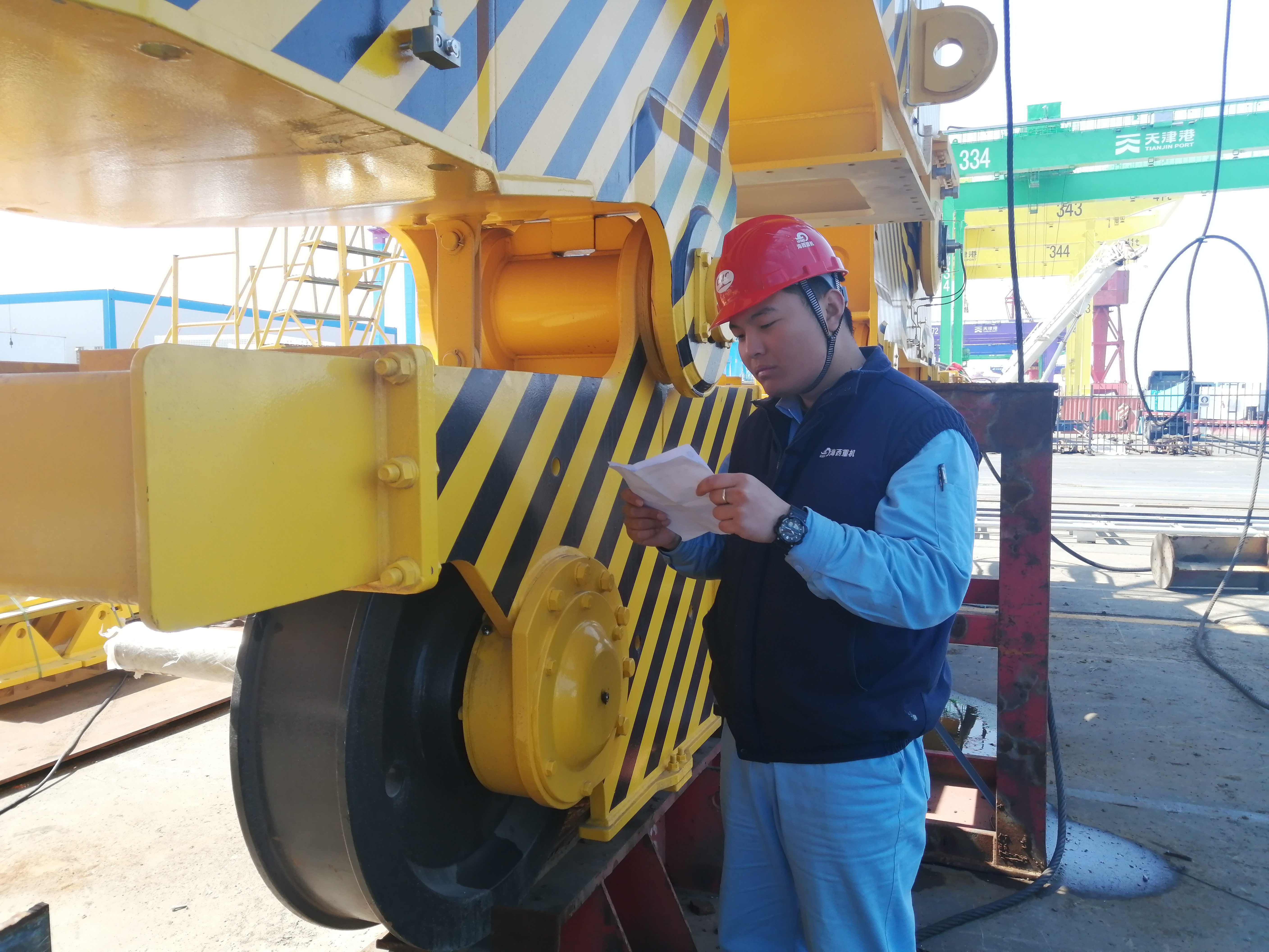 M38A前后大梁吊裝是大件吊裝,對安全生產要求高,節點緊急,該項目的具體負責人李永健積極想辦法,提前策劃,編制詳細的吊裝協調組織計劃,吊裝前與安技環保部、港口機械工程所開展安全技術交底,協調落實現場施工隊提前檢查大梁浮動物、格柵板固定情況;1600噸龍門吊使用緊張,項目組提前協調現場施工人員掛鉤,通過項目組的努力,1#機前后大梁吊裝僅用四小時落位完成,3#機后大梁落位和4#機后大梁托輥、耐磨板安裝等節點也都超前完成,為下一工序節約了時間。