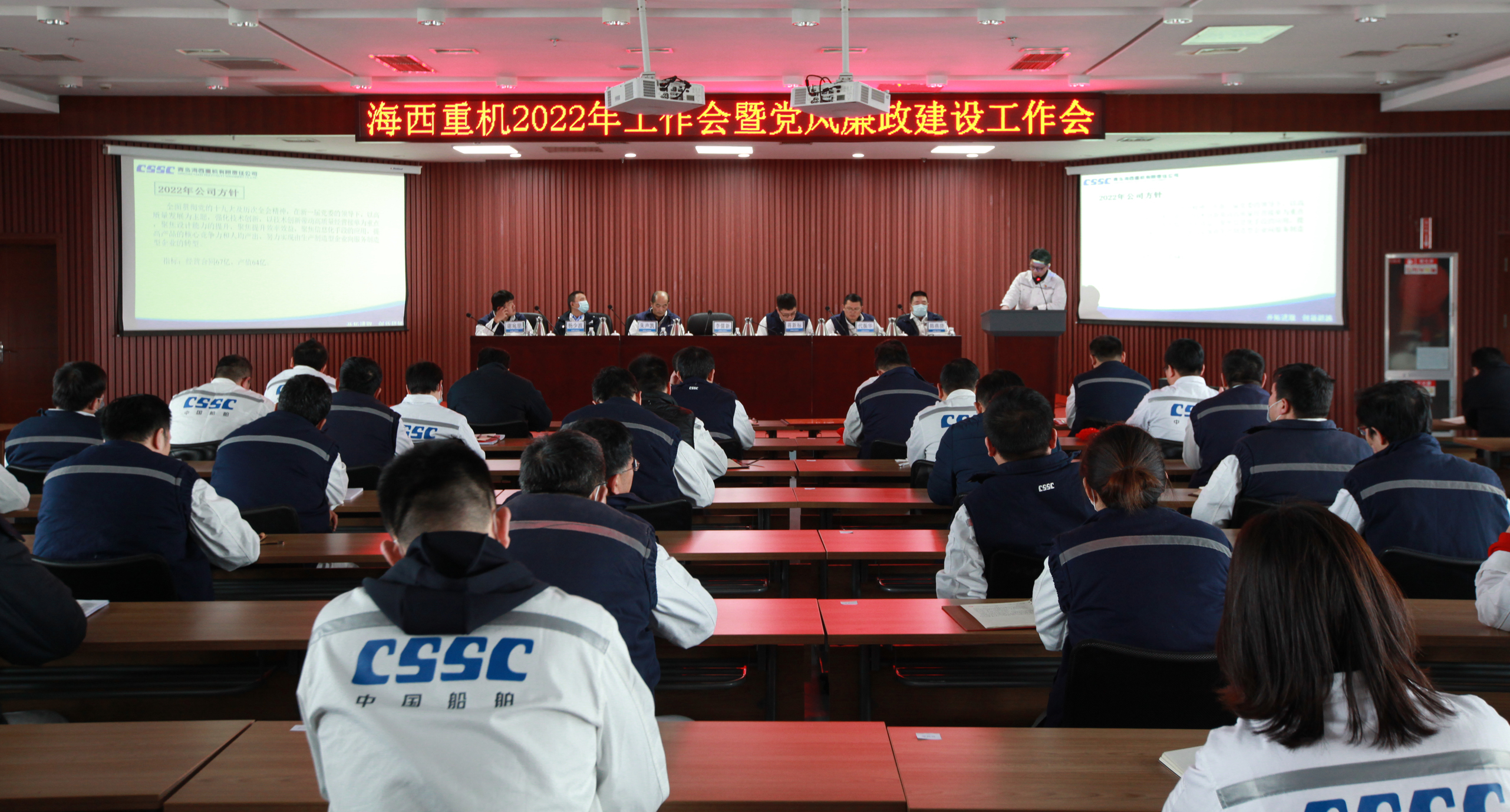 2月12日,中國船舶集團旗下武漢船機海西重機公司在901會議室召開2022年工作會暨黨風廉政建設工作會,觀看《凝心聚力謀發展 砥礪奮進譜新篇》公司2021年度匯報片,學習傳達武漢總部2022年工作會、黨風廉政建設工作會會議精神,總結公司2021年取得的成績,分析經濟形勢,進一步明確2022年工作思路,并就各方面重點工作作出部署。