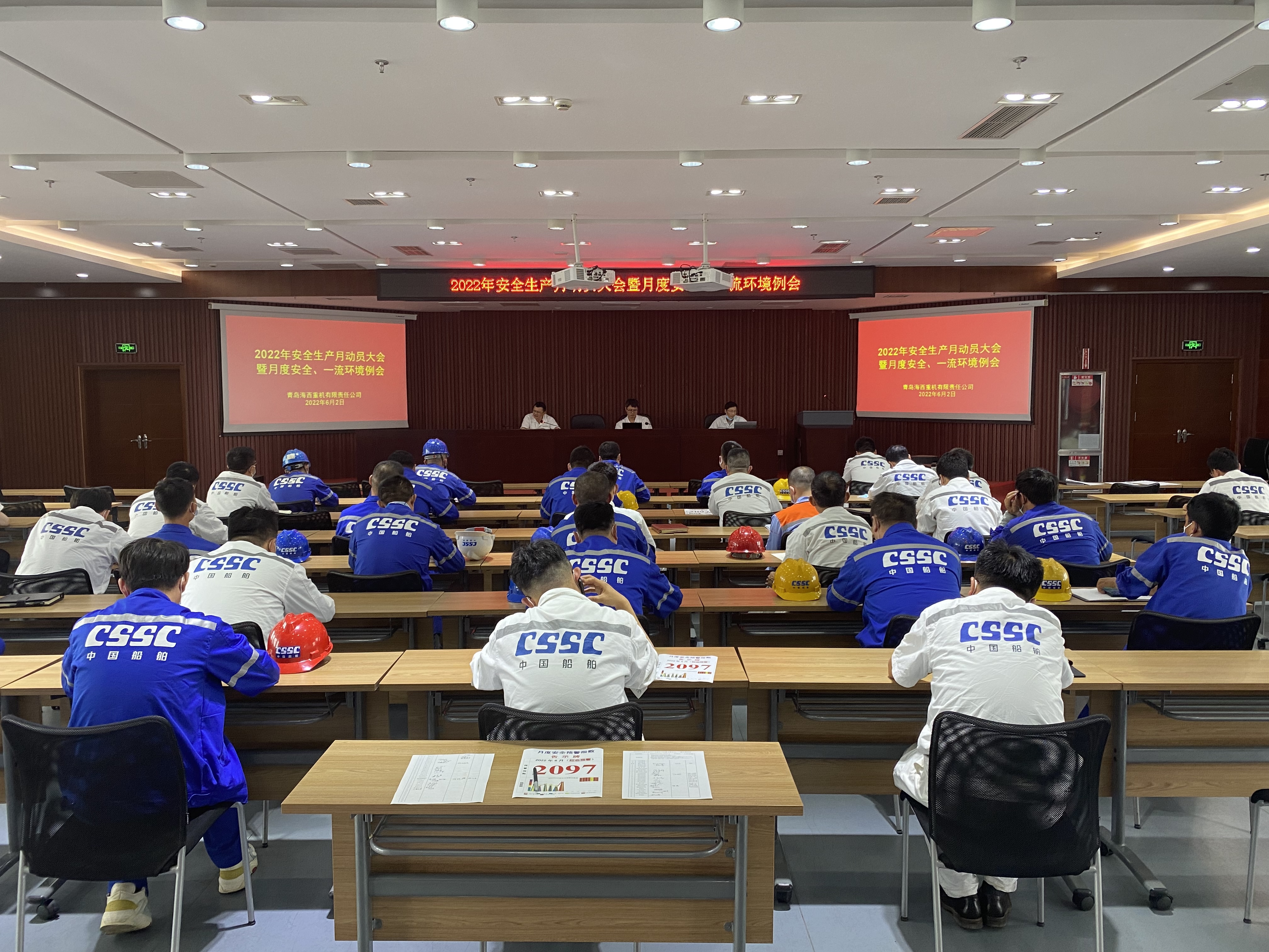 近日,在全國第21個“安全生產月”活動之際,中國船舶集團旗下武漢船機海西重機公司召開2022年度“安全生產月”啟動大會,圍繞“遵守安全生產法,當好第一責任人”主題部署相關活動,公司總經理蔣新標,副總經理代振華 ,各部門負責人、安全員及協理單位負責人等參加了啟動大會。