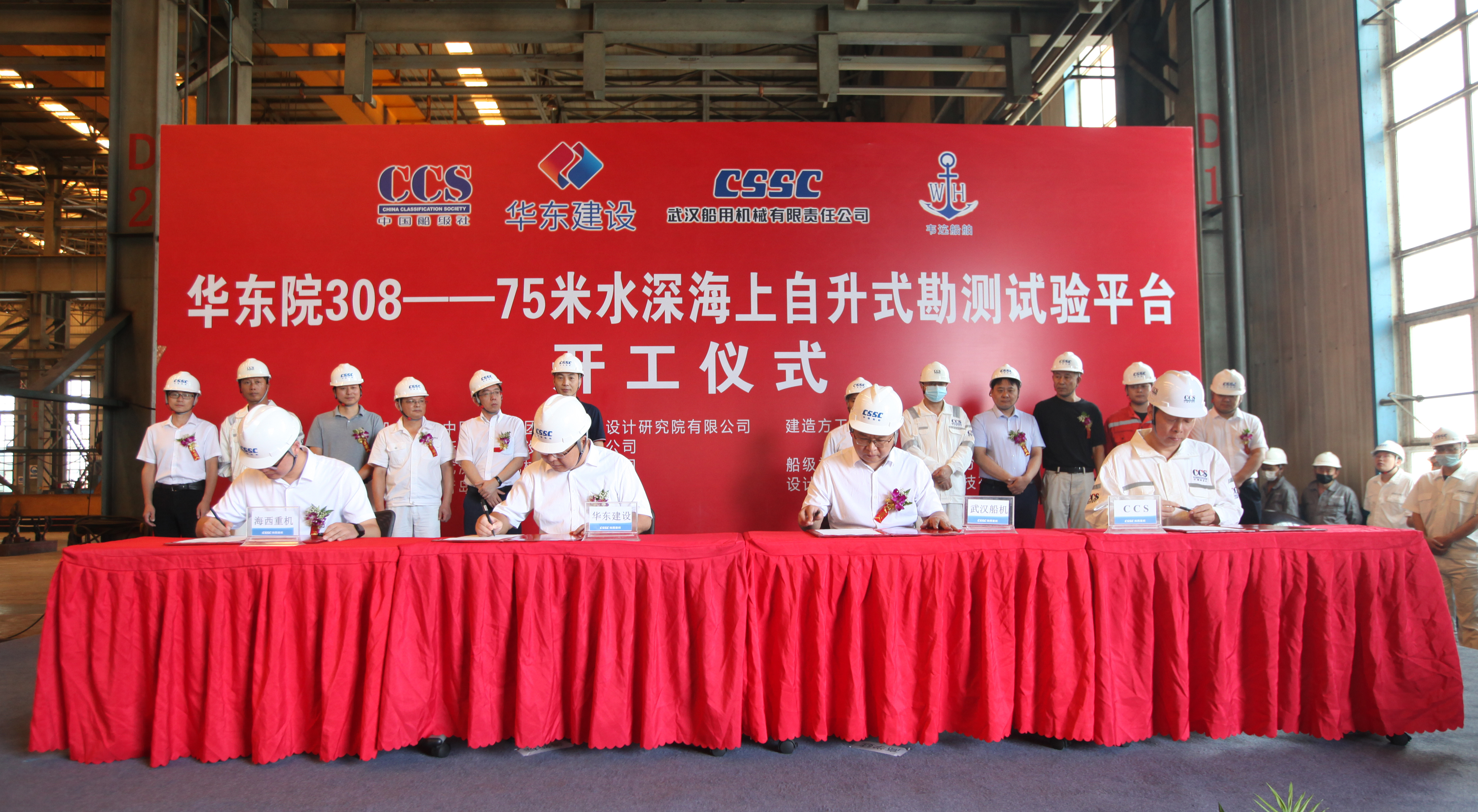 8月26日,中國船舶集團(tuán)旗下武漢船機(jī)海西重機(jī)公司承建的華東院308——75米水深海上自升式勘測試驗(yàn)平臺順利開工。浙江華東建設(shè)工程有限公司、中國船級社青島分社、杭州逸秀船舶技術(shù)服務(wù)有限公司、上海韋迒船舶科技有限公司、中國船舶工業(yè)貿(mào)易有限公司、武漢船用機(jī)械有限責(zé)任公司、青島海西重機(jī)有限責(zé)任公司代表出席儀式。