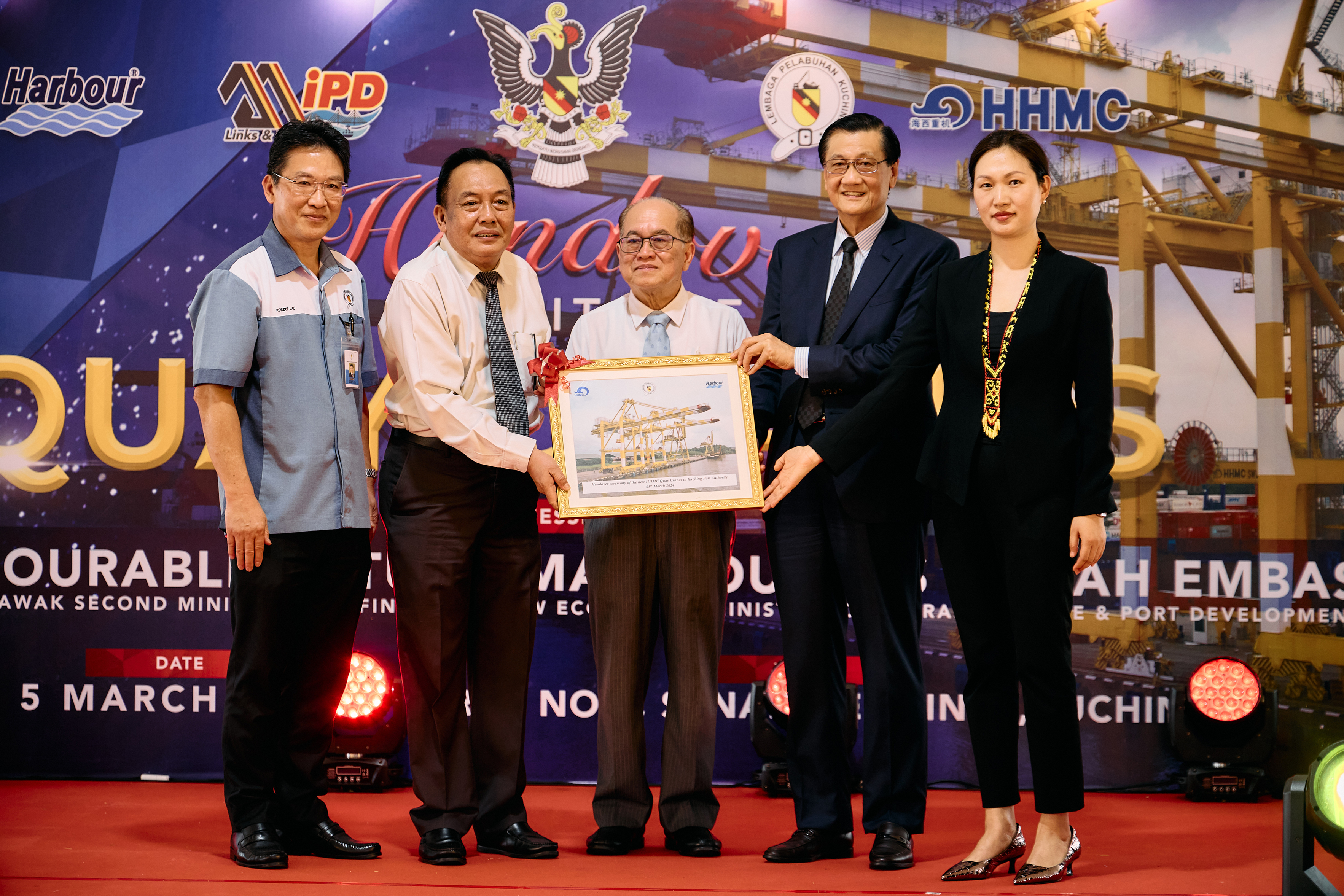 交機儀式上,馬來西亞砂拉越州副總理兼基礎建設與港口發展部部長Amar Douglas Uggah Embas、古晉港港務局主席Awang Bemee Bin Hj.Pengiran Ali Basah、Harbor Link集團董事長Francis Yong Piaw Soon蒞臨現場并分別致辭,各方強調了該項目對當地港口發展的重要經濟意義與社會意義,同時對海西重機產品以及項目團隊給予了充分肯定。隨后,各方在岸橋前進行剪彩并合影留念。