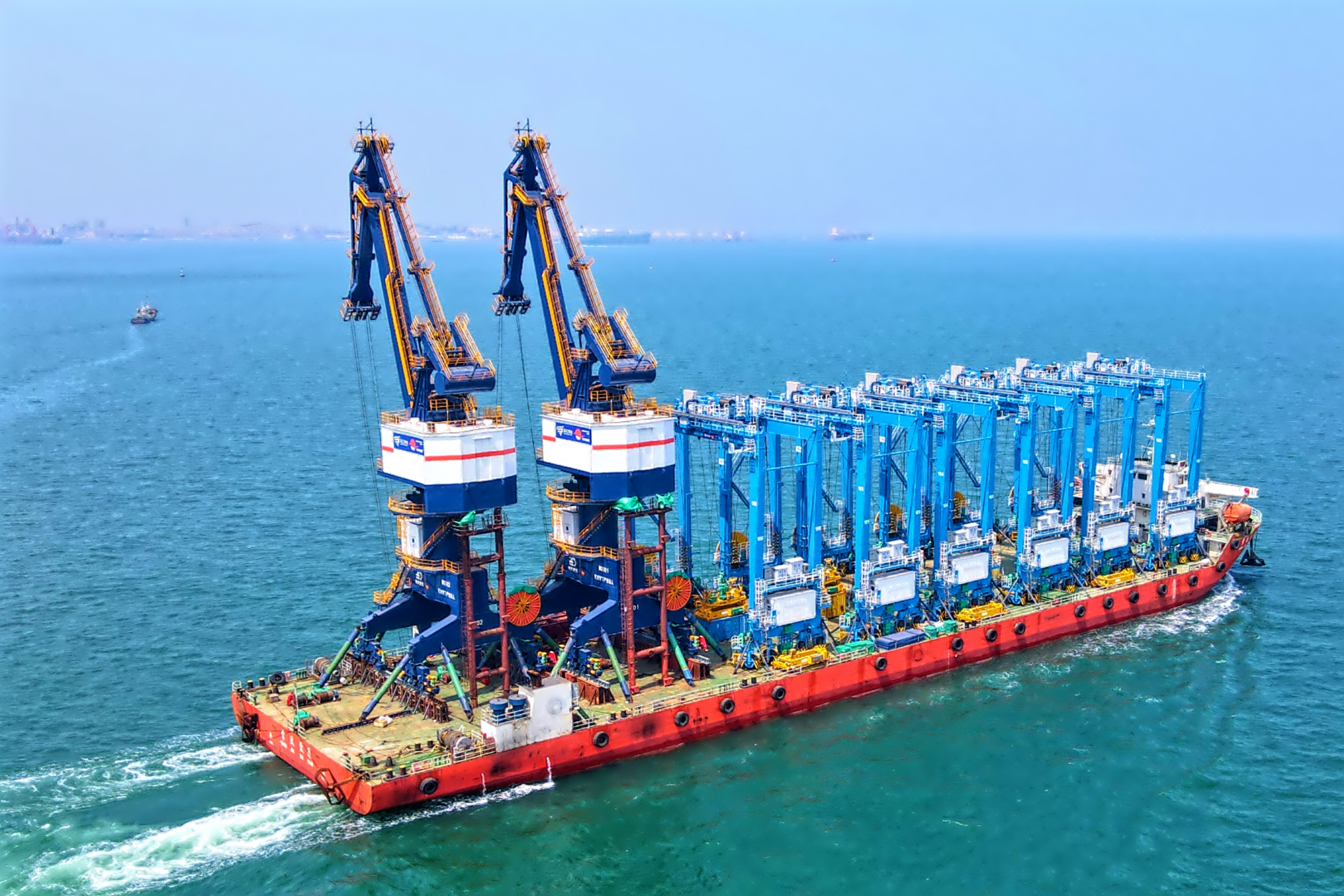 該批門機配有吊鉤、抓斗、集裝箱吊具,可用于件雜貨作業及集裝箱、抓斗作業,可滿足5萬噸級貨船的裝卸需求,將與前期海西重機為其打造的批量岸橋協同作業。