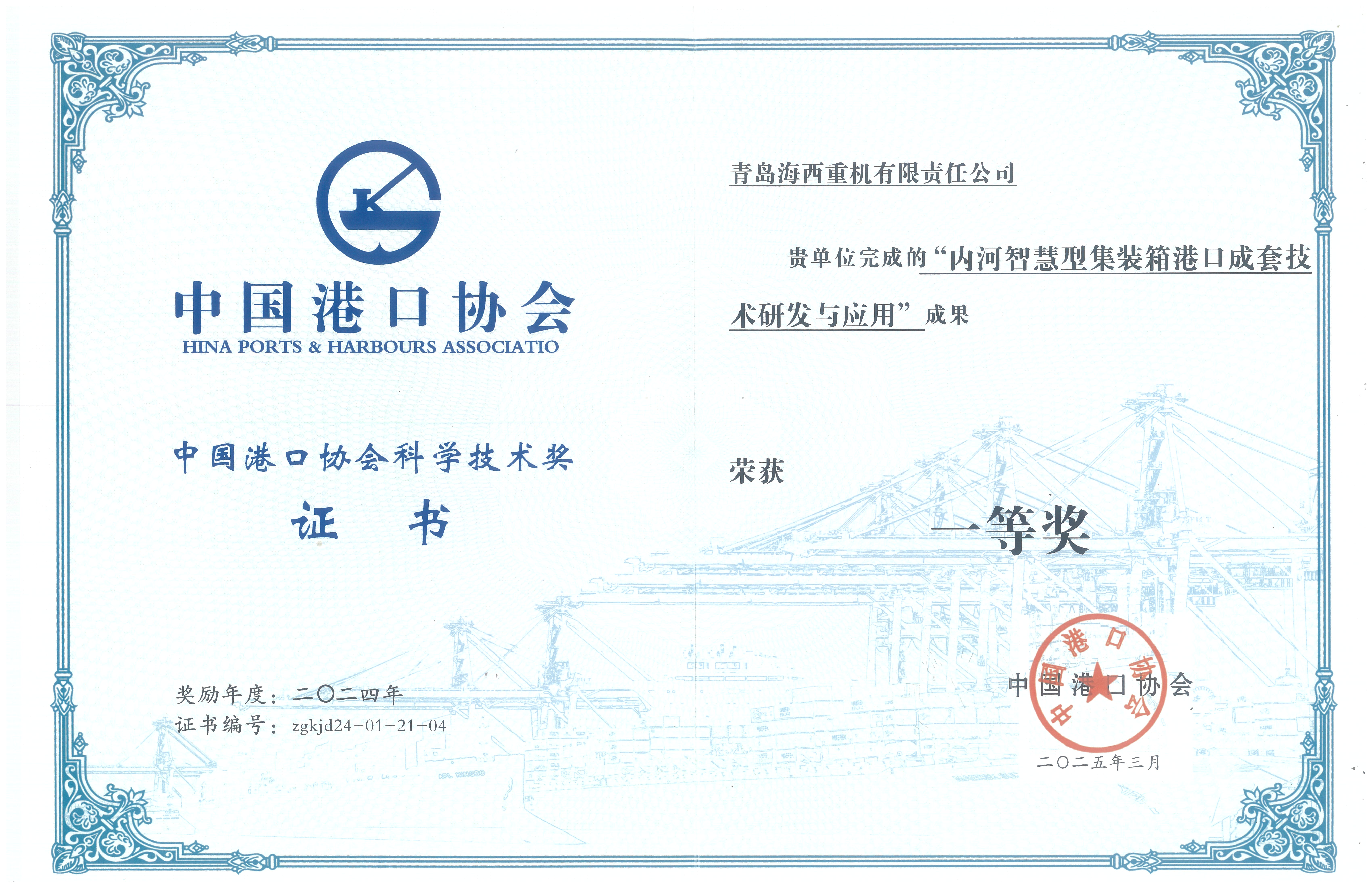 近日,由海西重機深度參與并共同申報的技術成果——龍拱港《內河智慧型集裝箱港口成套技術研發與應用》項目榮獲科技部和國家獎勵辦公室共同批準設立的2024年度“中國港口協會科學技術獎”科技進步一等獎。項目實施方龍拱港成為了江北內河首個獲得中國港口協會科學技術一等獎的港口,這一突破標志著海西重機在智慧港口領域的技術創新與系統集成能力再獲國家認可。
