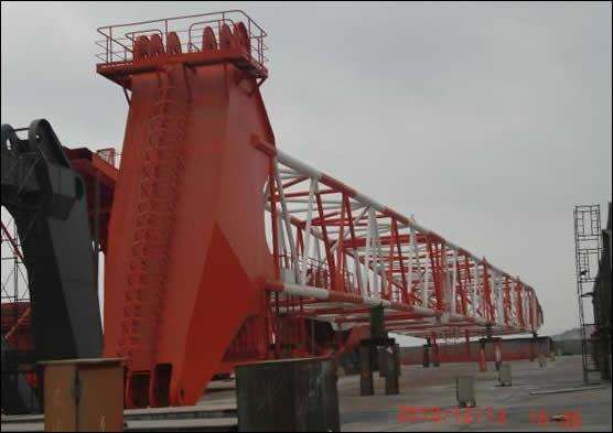 科研43A是我公司為江蘇南通韓通船舶重工有限公司生產的250T-30m風車安裝船用回轉起重機,整機重約為650T。這是我公司第一次生產海工產品,設計難度大,技術要求高,施工過程中出現問題多,而且工期要求緊。從一開始制作公司領導就極為重視,專門成立了以副總經理為組長的生產小組,對生產中出現的問題盡量簡化程序,以最快的速度予以解決。目前,我公司負責生產的科研43A各部套結構件已順利制作完成,通過業主驗收,已達到發運條件。