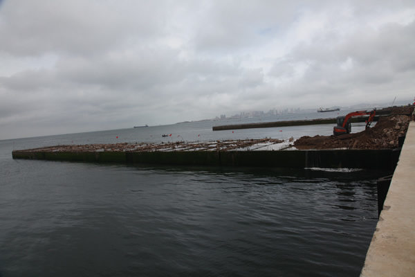 突堤碼頭作為公司產品多元化產品不可或缺的載體,它在公司發展上有著重大戰略意義,是公司進軍海洋平臺的堅實保證。自2012年3月16日動工開始一直倍受公司領導的關注,經過四個多月的不懈努力:基礎開挖、拋石并夯實、人工水下整平、沉箱安置、沉箱回填,如今十個沉箱全部安置完成并開始沉箱回填,突堤碼頭已“浮出”水面,預示著突堤碼頭工程進度已過半,也確保整個工程保質、保量按期完成。