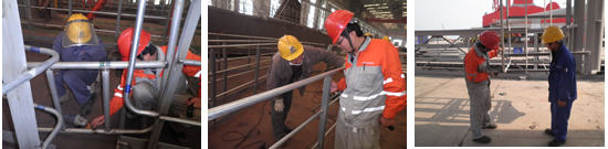 自公司提出“精品戰略”和“三提升”以來,品質部倍感壓力,“產品質量提升”最終表現就是質量檢驗和質量控制,我支部全體員工集思廣益,決定從直接給人視覺沖擊的輕鋼結構尋找突破口,提高整機視觀質量。為此,品質管理部組織召開了輕鋼結構專題會議。請工藝人員詳細講解了輕鋼結構件的制作要求,與工藝人員和輕鋼件制作人員一起討論和完善了《門座起重機輕鋼結構制作通用技術要求》。協作鋼構制造部調動工人積極性,發動工人動腦筋、想辦法,發明了角鋼切邊工裝,極大地提高了角鋼切邊效率和欄桿質量。品質管理部嚴格報檢“執法”:第一要求輕鋼件開工前的質量、技術交底;第二要求檢驗員制造過程的巡查控制;第三要求所有的彎管必須在彎管機上完成,否則拒檢;第四嚴格控制完工后報驗:對焊縫的成型、欄桿的直線度、斜梯的傾斜角度,彎管的角度、管件對接的內襯管和焊后光滑過度等等一一檢查,確保梯子欄桿的質量。經過近三個月努力,輕鋼結構件的整體質量有了明顯提高,得到駐廠監理和業主的一致好評!