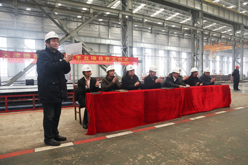 在開工點火儀式上,船東德賽公司和美國ABS船級社都充分肯定了公司在開工前的準備工作,對公司的施工組織設計、項目人員配備、焊接工藝評定等等工作都非常滿意。公司副總孫國慶在點火儀式上承諾:在船東代表的指導下,在美國ABS船級社的監造下,公司一定秉承“你(德賽公司)給我機會,我給你喜悅”,建造一個一流的海工平臺交付船東,讓大家都喜悅!