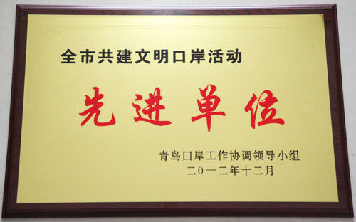 2012年度“全市共建文明口岸活動(dòng)先進(jìn)單位”榮譽(yù)稱號(hào)花落青島海西重機(jī)有限責(zé)任公司。
