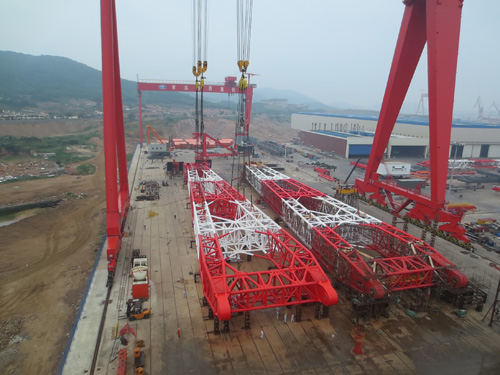 3600t浮式起重機臂架安裝分三步驟,共3吊,都是大噸位、高難度、極具挑戰性的吊裝工況。整個吊裝方案從策劃到定稿歷經波折,歷時幾個月,通過技術人員的反復討論、驗算、核對最終確定,本次臂架吊裝的順利完成充分驗證了吊裝方案制定的準確性和可靠性,對公司后續吊裝方案的設計積累了寶貴的經驗。