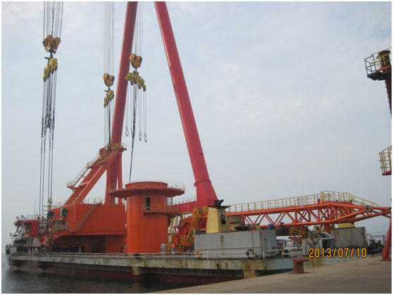 G127項目制作后期,遇到連續陰雨天氣,對構件涂裝工作造成了極大影響,經過各部門的團結協作,使該項目在預定的時間完成了裝船工作。該項目的成功制作,為我司設計與制作大噸位的固定式回轉起重機積累了寶貴的經驗,同時也成功驗證了我司可以合理利用1600T龍門吊和突堤碼頭港池進行有效配合,直接進行港機大件甚至是整機的吊裝上船作業。